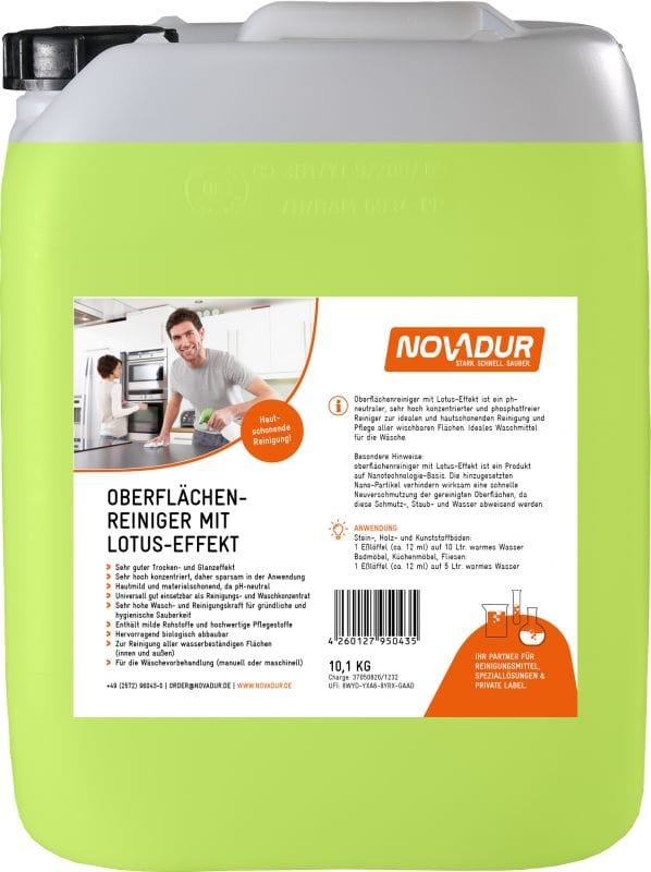 Entfernt sämtliche Verschmutzungen von wasserbeständigen Oberflächen. Mit guter fettlösender, hygienischer Wirkung. Der Allesreiniger kann auch bei fettigen Verschmutzungen für die tägliche Fußbodenreinigung benutzt werden. Hinterlässt einen angenehm frischen Duft.