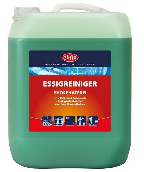 Eilfix Essigreiniger ist ein universell einsetzbares Produkt für den Sanitär-und Küchenbereich. Kalkreste, Seifenreste und Wasserflecken löst Eilfix Essigreiniger auf leichte Weise . Die verwendeten Tenside sind biologisch rasch abbaubar und daher umweltverträglich .
