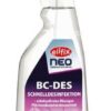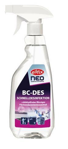 Eilfix neo BC-DES ist eine Schnelldesinfektion und frei von Aldehyden. Außerdem hat dieses Flächendesinfektionsmittel ein breites Mikrobizides Wirkungsspektrum und ist sporozid. Falls starke Verschmutzungen vorhanden sind, diese vorher mit Neutralreiniger von der Fläche entfernen.