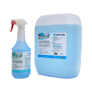 Anwendungsfertiges aldehydfreies Flächendesinfektionsmittel mit breitem mikrobiozidem Wirkungsspektrum.