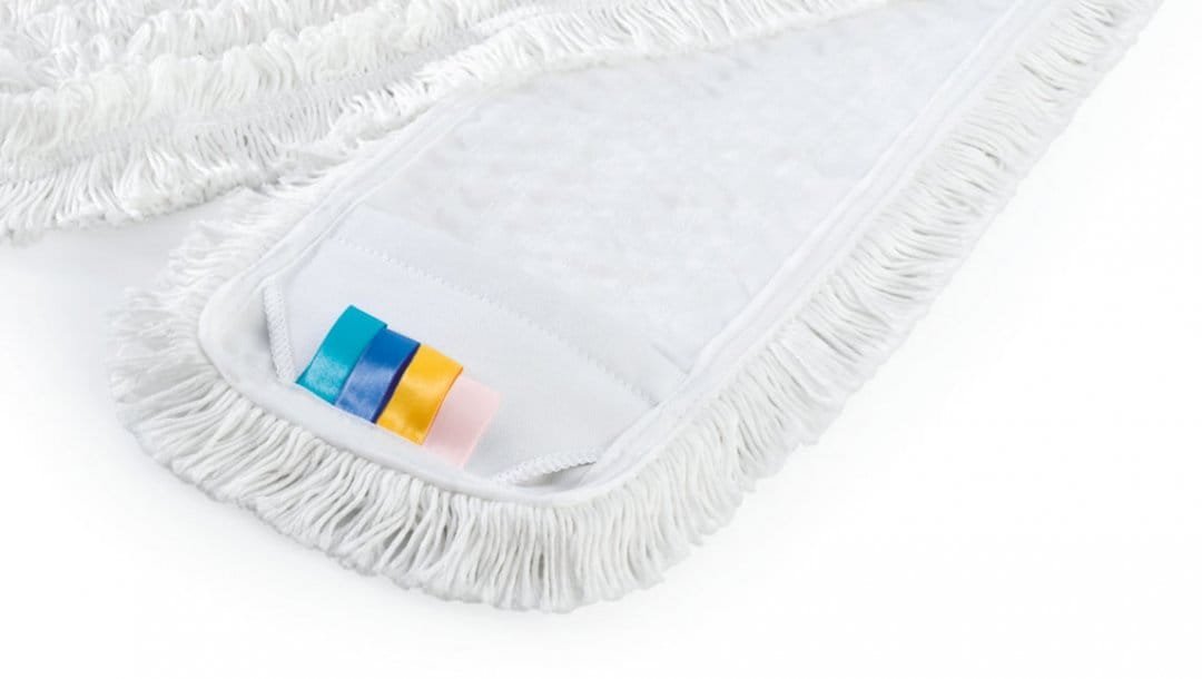 - 4-farbige Schlaufen (blau, rot, gelb, grün), für Farbkodierung des Wischbezugs — einfach die nicht benötigten Schlaufen abschneiden!