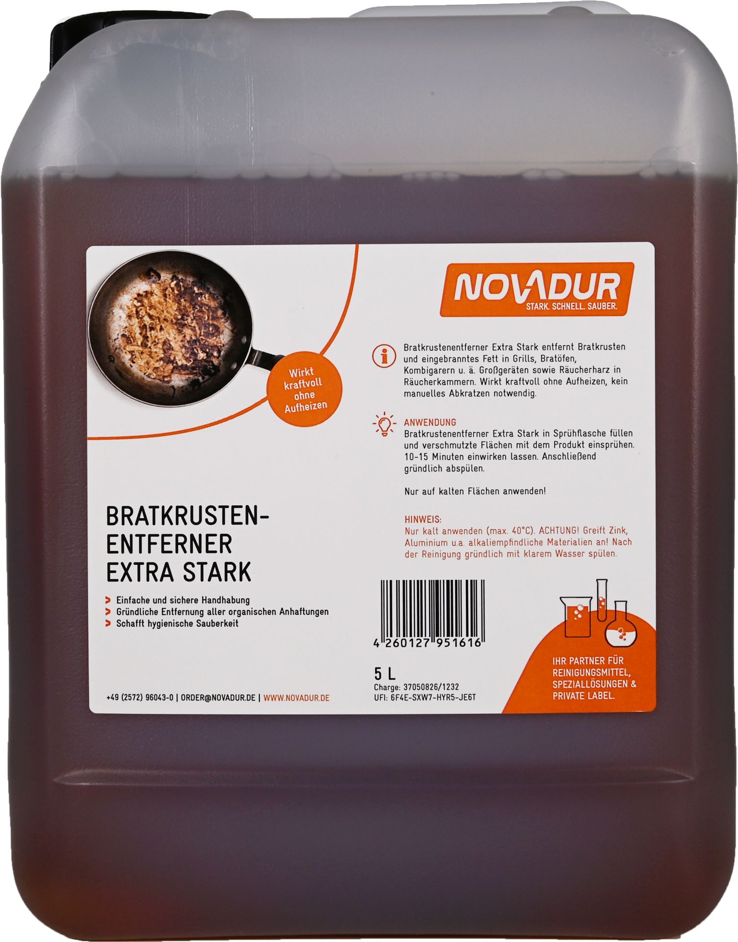 Bratkrustenentferner Extra Stark entfernt Bratkrusten und eingebranntes Fett in Grills, Bratöfen, Kombigarern u. ä. Großgeräten sowie Räucherharz in Räucherkammern. Wirkt kraftvoll ohne Aufheizen, kein manuelles Abkratzen notwendig.