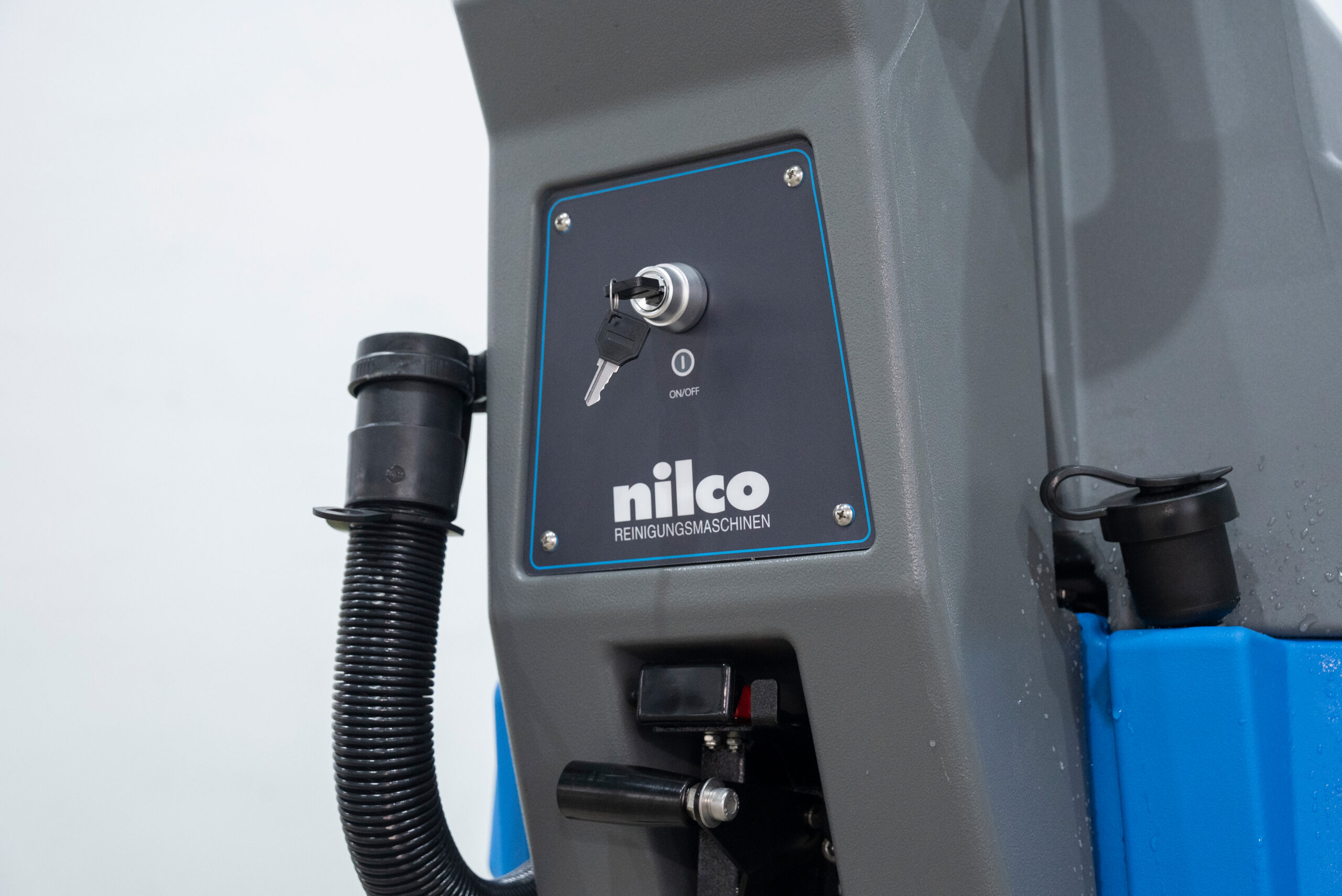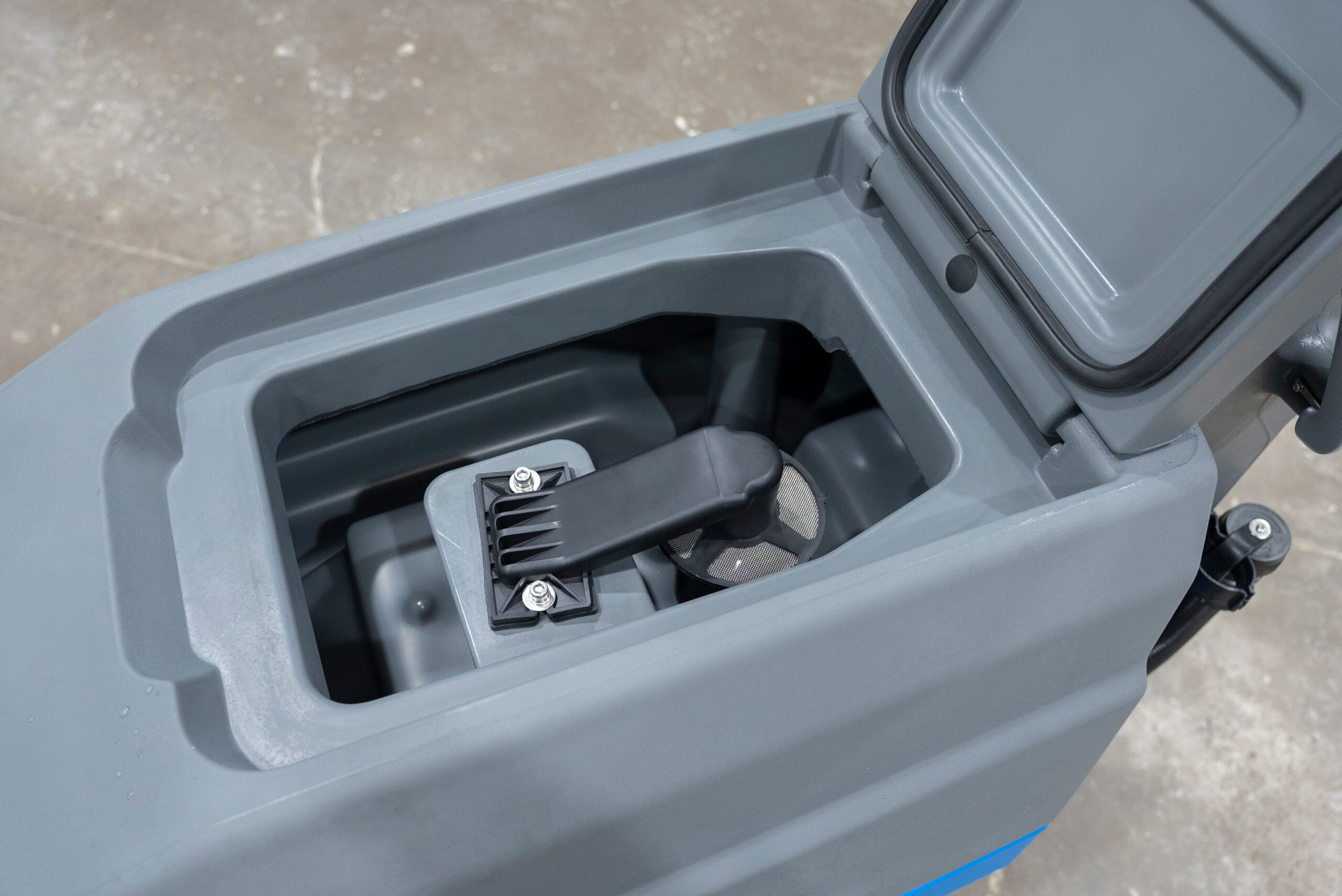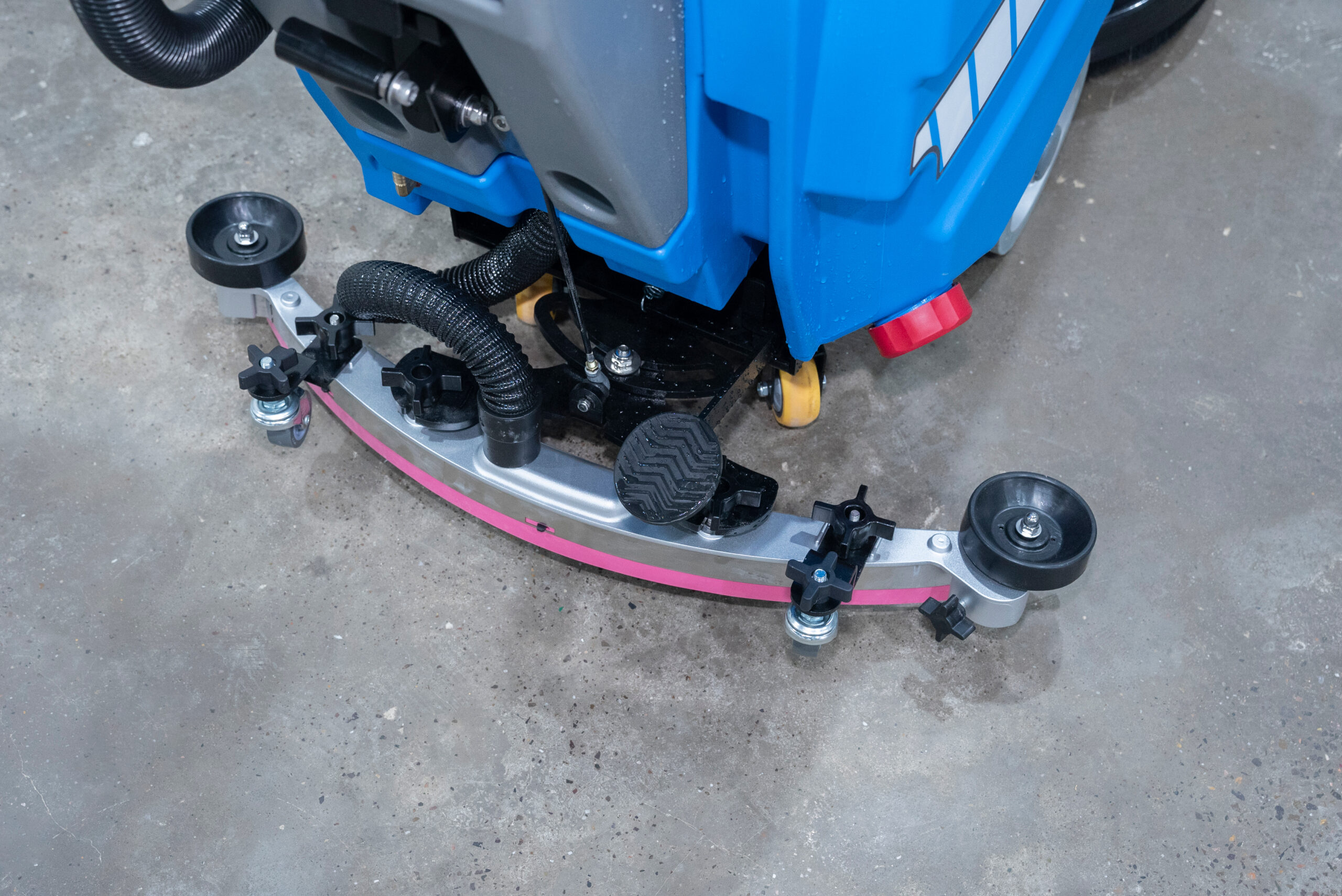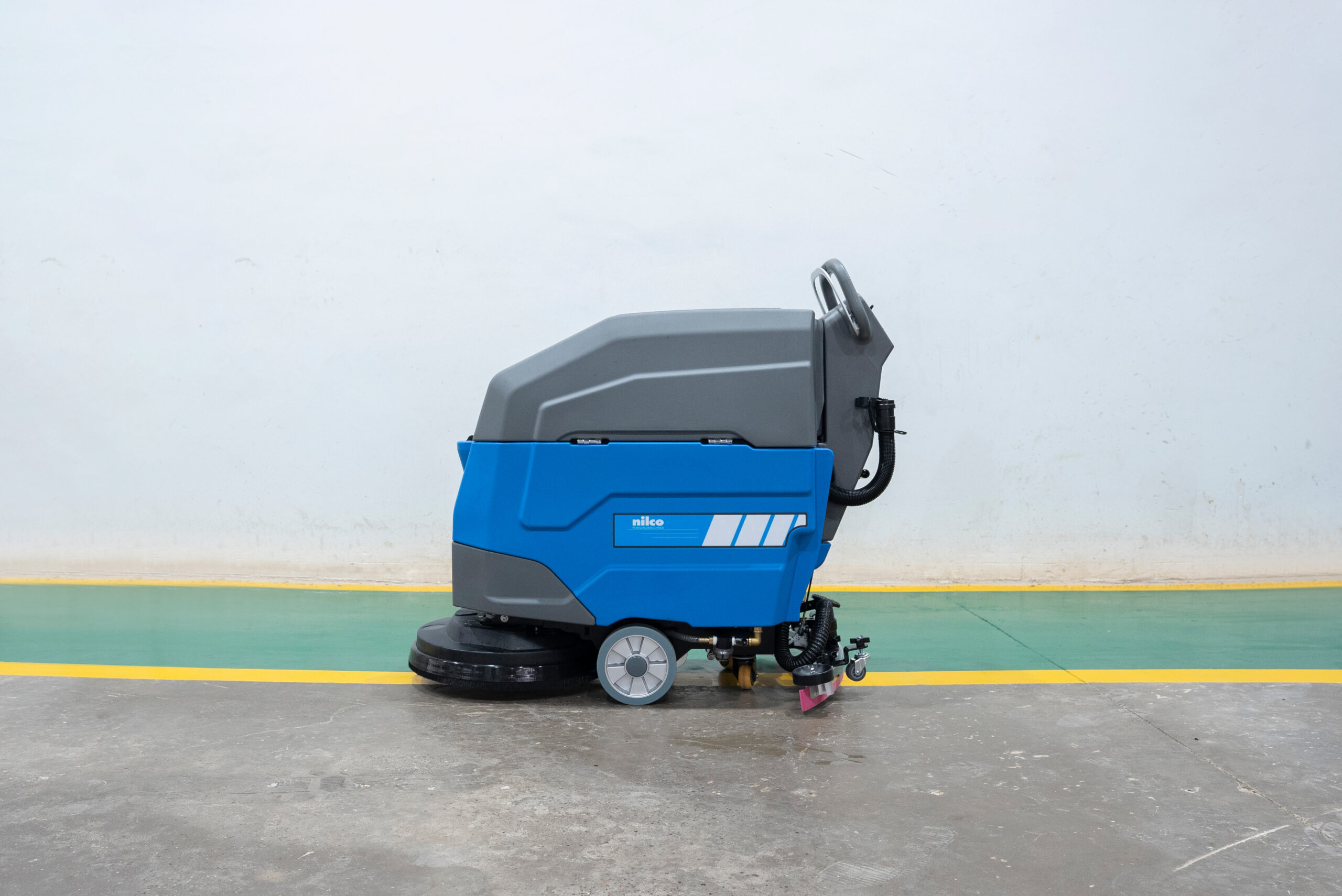 Leistungsstarke Scheuersaugmaschine mit Fahrmotor für mühelose Reinigung. Stoßdämpfende Räder und flexible Sauglippen aus Naturgummi schützen Böden und Maschine. Wartungsfreie Batterie, große Frischwassertanks und intuitive Bedienung über einfaches Bedienfeld. Ideal für Hotels, Bibliotheken, Einkaufsmeilen, Wartebereiche und Logistiklager.