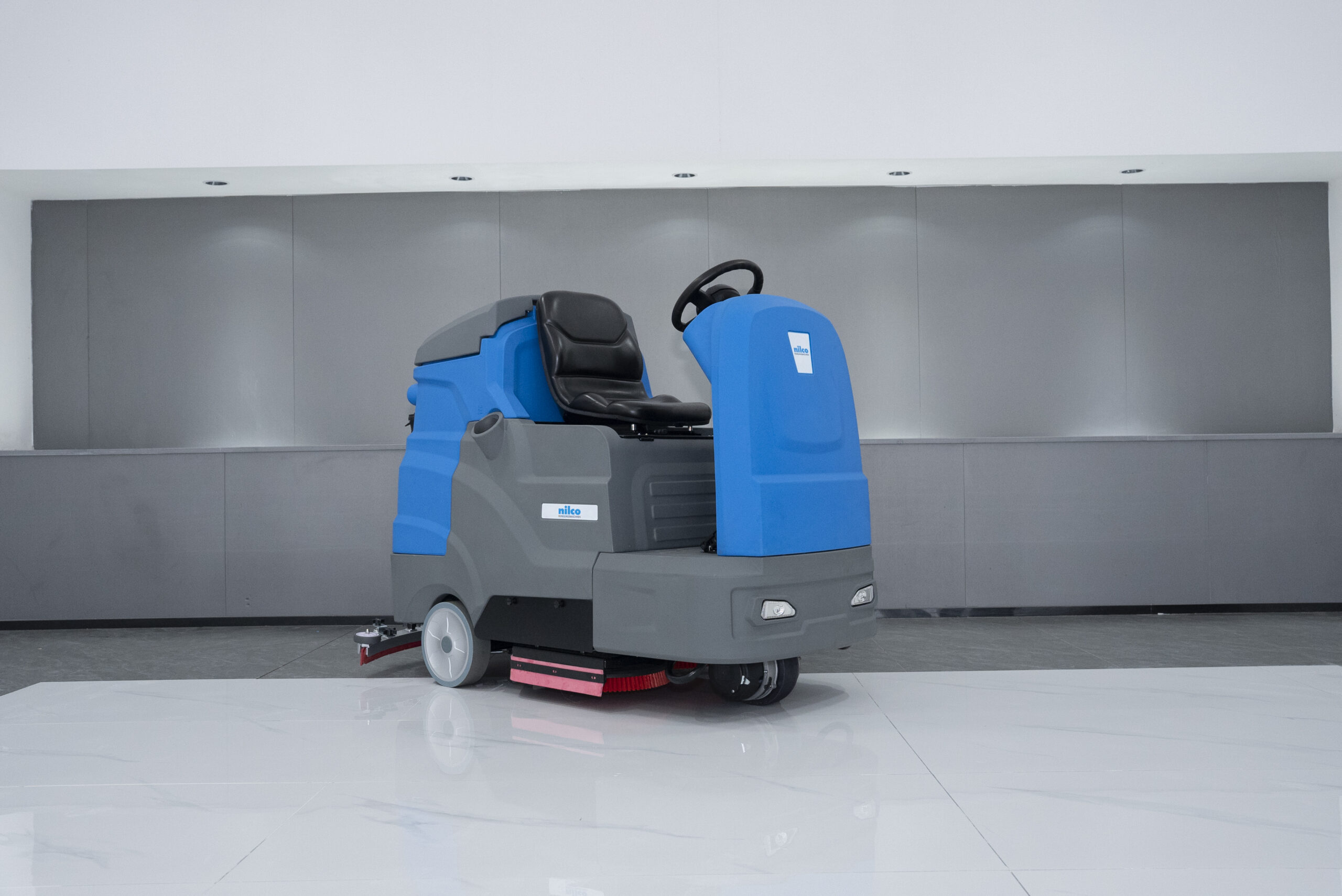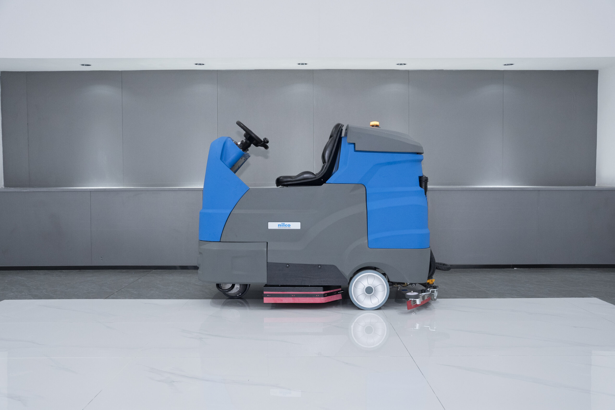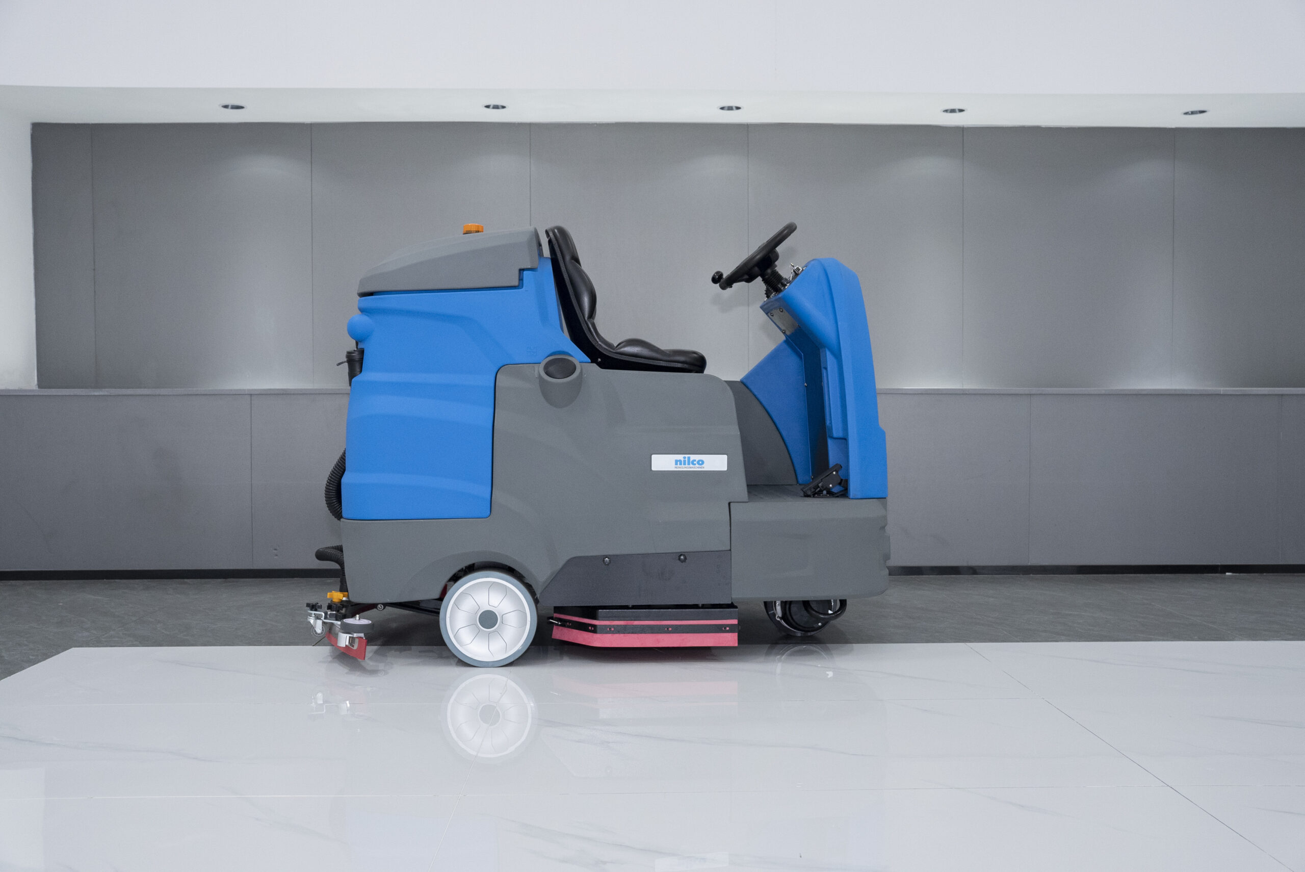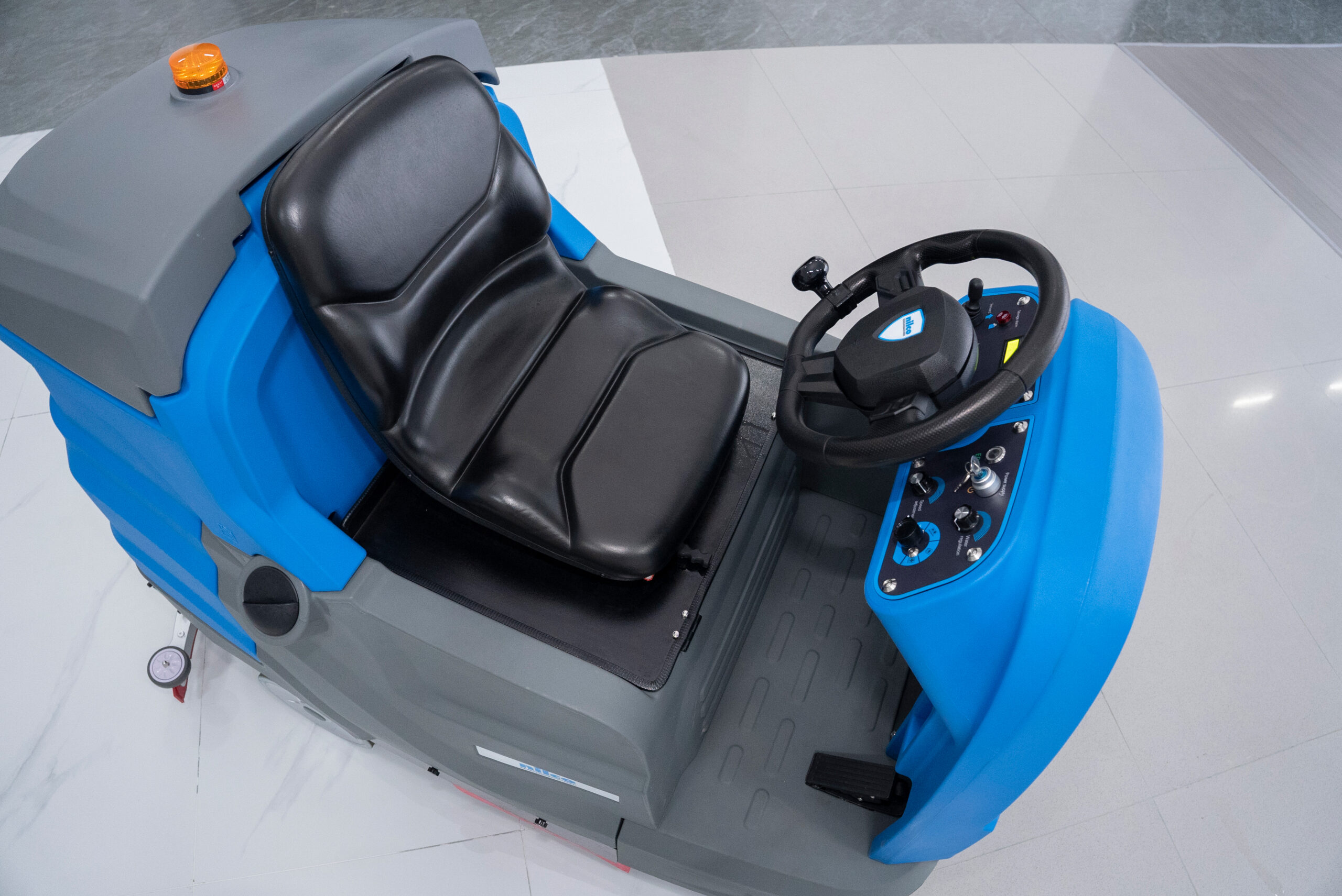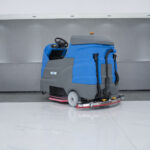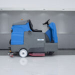 Professionelle Aufsitz-Scheuersaugmaschine mit 90 cm Arbeitsbreite, doppeltem Bürstensystem und ECO-Modus. Großer 240-Liter-Frischwassertank für lange Einsätze. Wartungsfreie Batterien, LED-Scheinwerfer, Rückfahrwarnleuchte und ergonomisches Fahrersitzdesign. Ideal für Flughäfen, Lagerhallen, Parkhäuser und große Flächen.