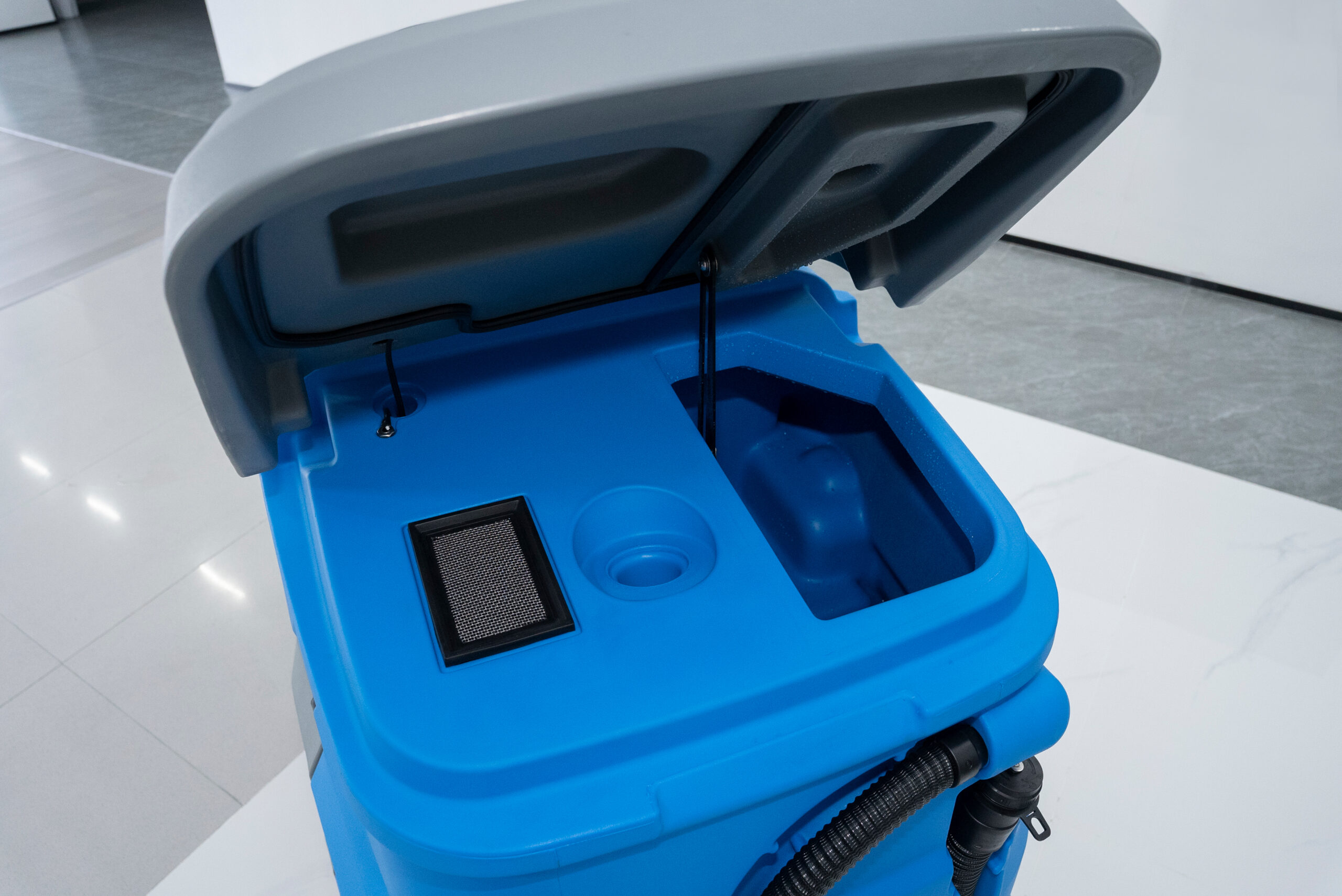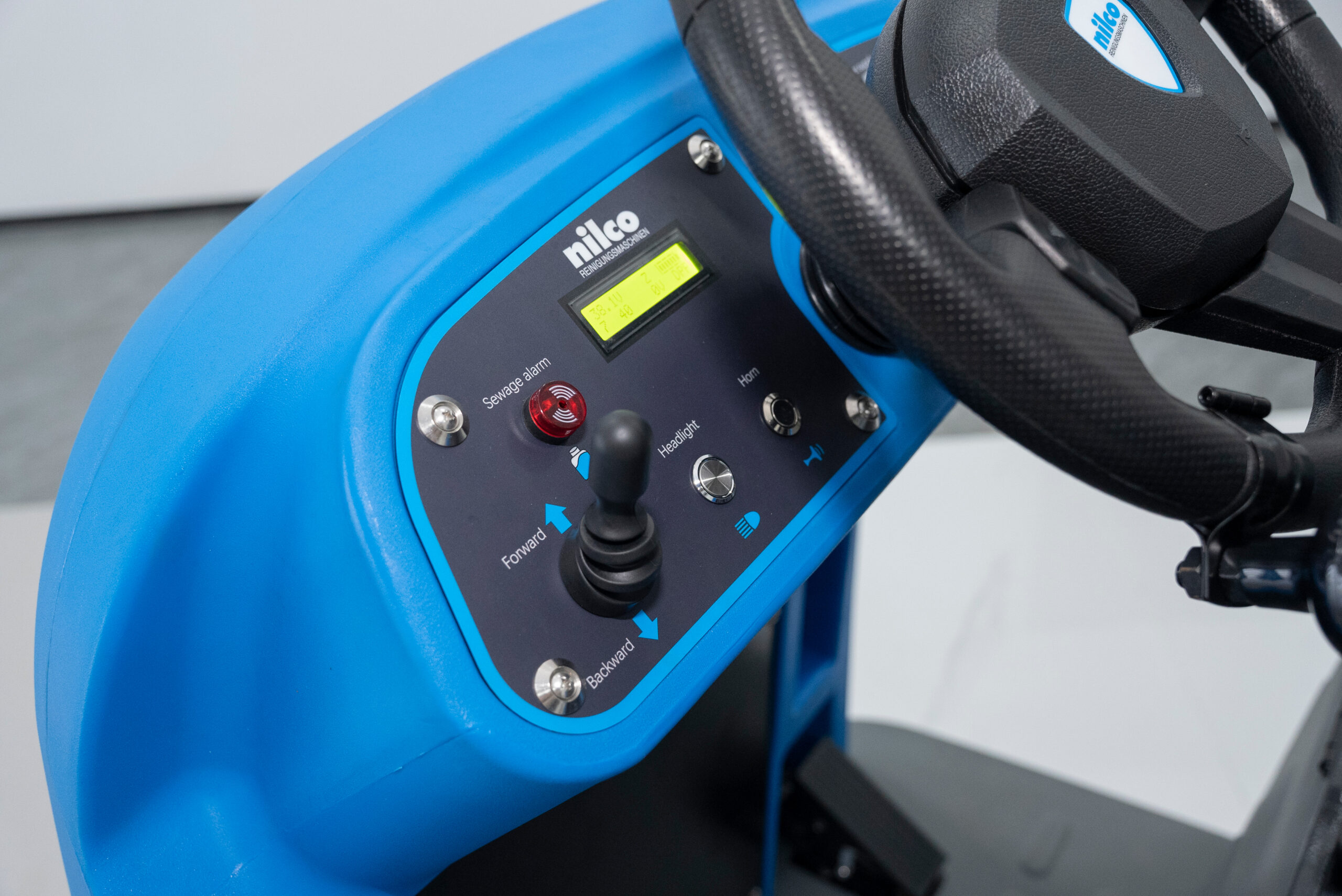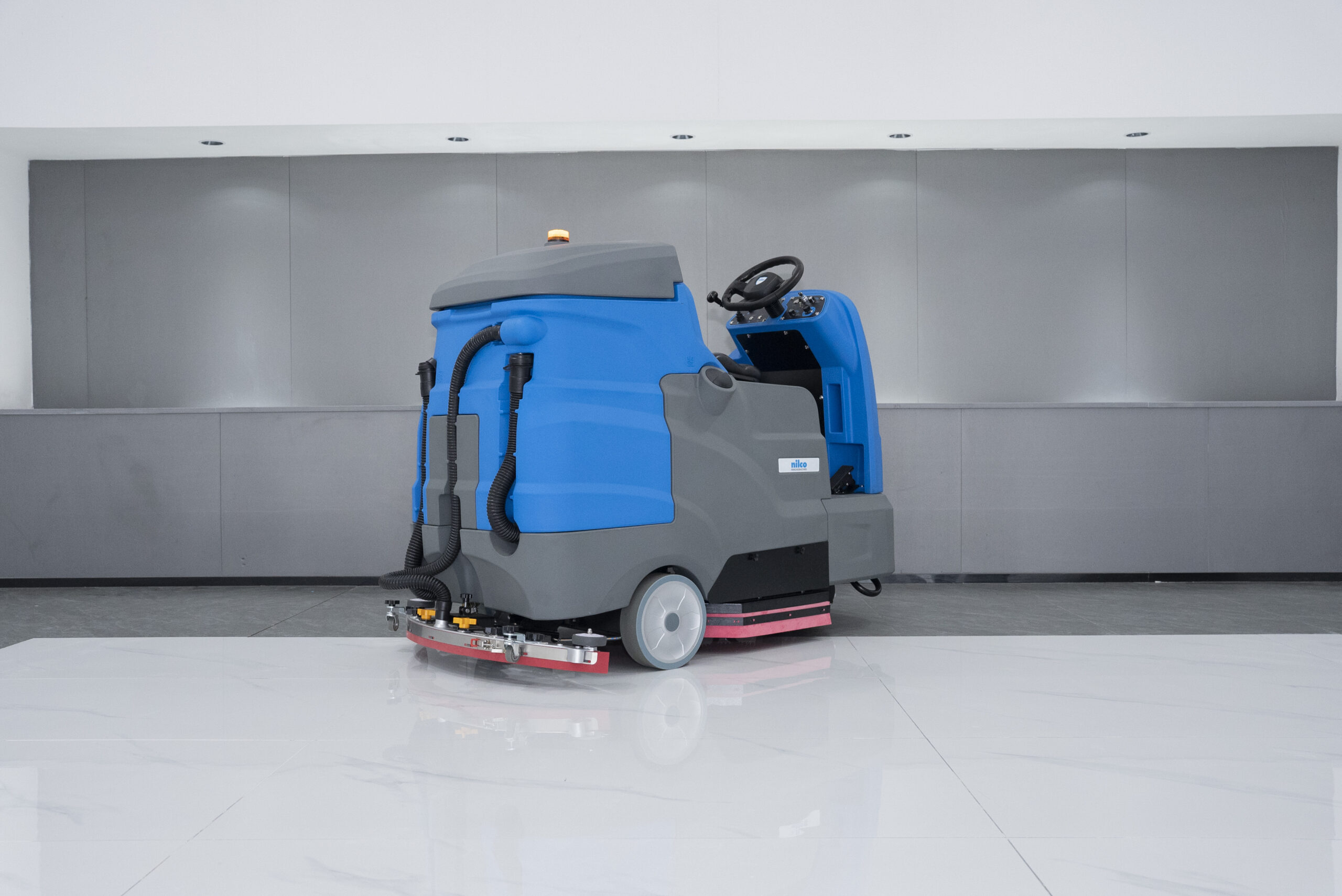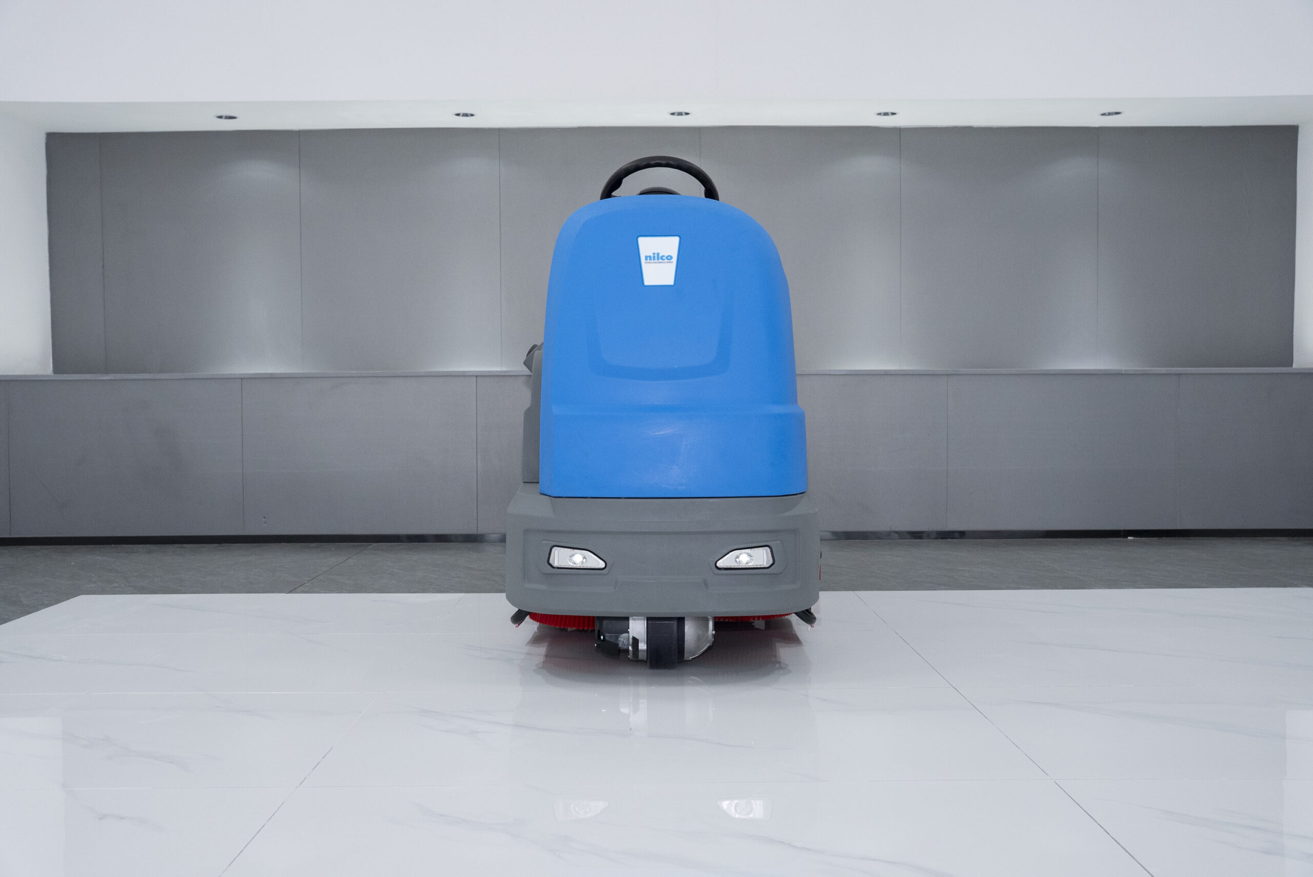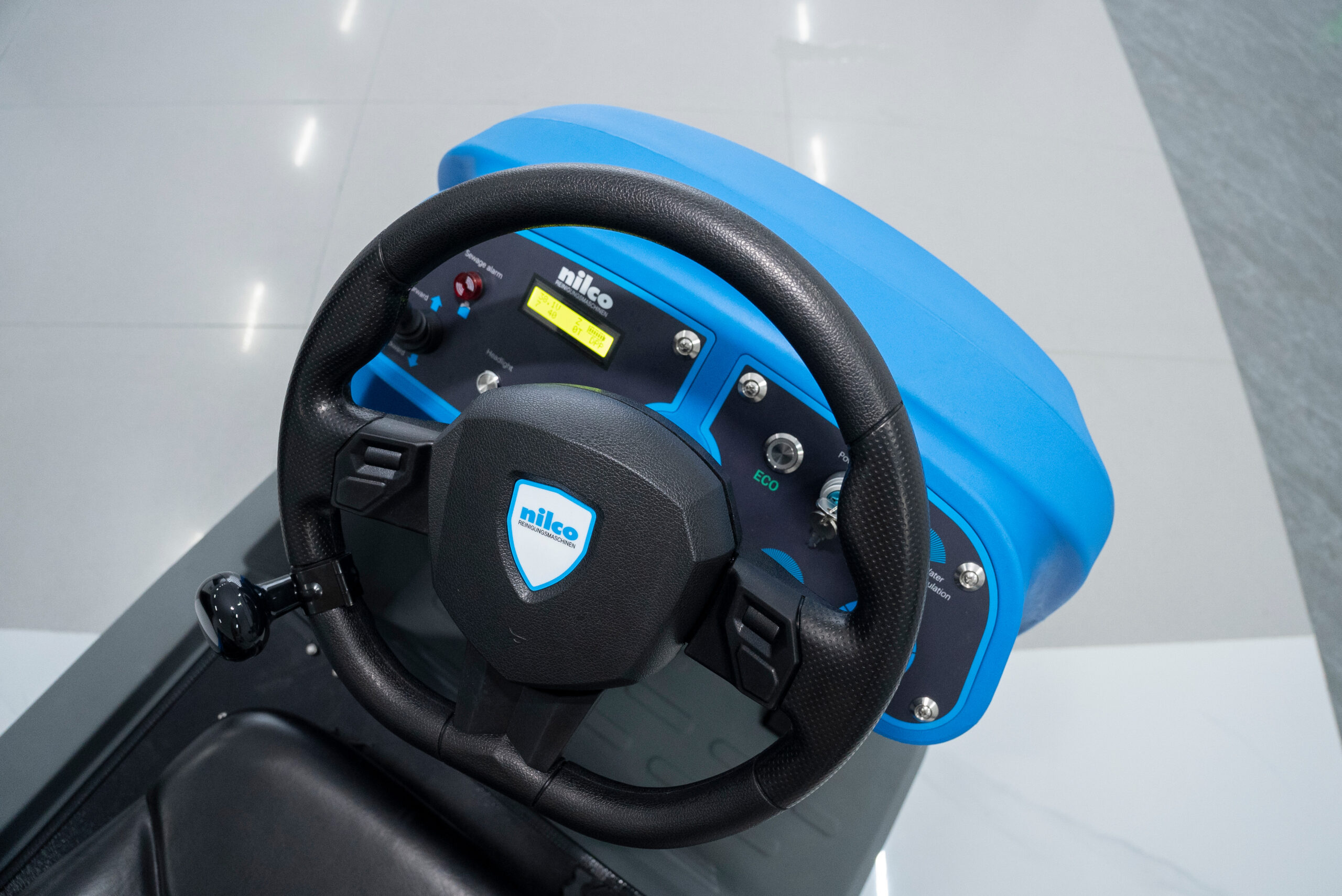 Professionelle Aufsitz-Scheuersaugmaschine mit 90 cm Arbeitsbreite, doppeltem Bürstensystem und ECO-Modus. Großer 240-Liter-Frischwassertank für lange Einsätze. Wartungsfreie Batterien, LED-Scheinwerfer, Rückfahrwarnleuchte und ergonomisches Fahrersitzdesign. Ideal für Flughäfen, Lagerhallen, Parkhäuser und große Flächen.