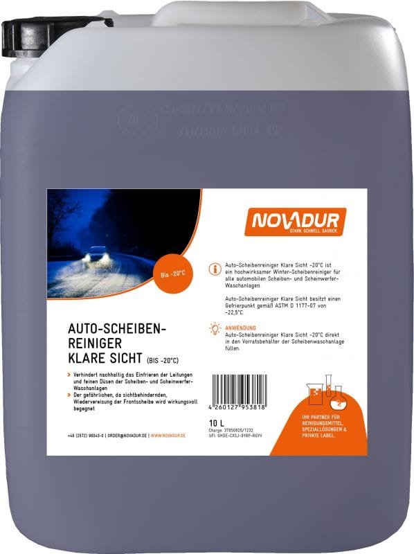 Unser effektives und froststabiles Reinigungsmittel für die Windschutzscheibe. Unverdünnt bis -20° C. Auto-Scheibenreiniger Klare Sicht schafft Durchblick im winterlichen Straßenverkehr – ohne zu schlieren! Gleichzeitig entfernt es zuverlässig Fett- & Silikonverschmutzungen.