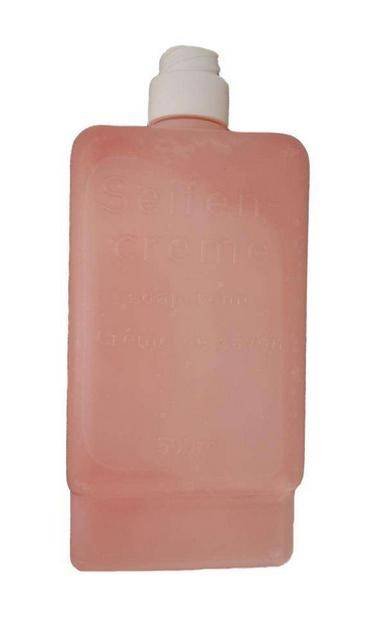 Die Cremeseife wird in die zuvor angefeuchteten Haende dosiert und verrieben. Mit klarem Wasser