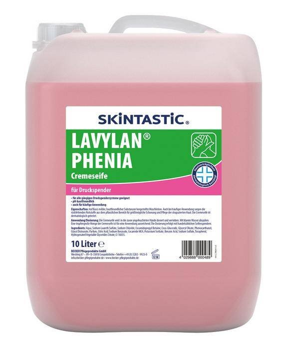 Die Dosierung erfolgt mit handelsueblichen Seifenspendern.